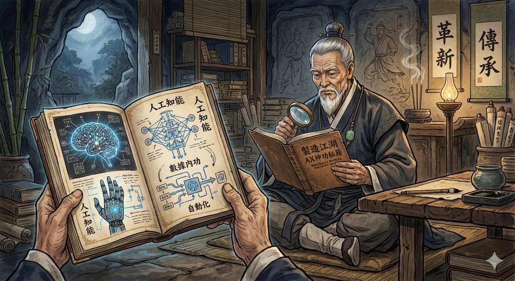 The whispers spoke of a legendary secret manual. A technique of unimaginable power. Its name — The Divine Technique of AX: AI Transformation (AX神功)